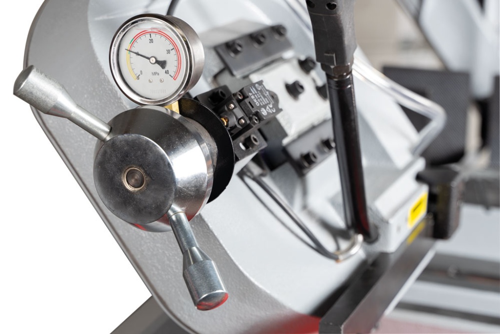 Dimension du ruban : 3160 x 27 x 0,9 mmCapacité boîte a engrenages : 0.6 litres SAE 80W-90Dépôt lubrifiant : 13 litres.Puissance pompe système d’arrosage : 45wArrêt automatique en fin de coupeMachine en fonte grise, scie guidée par roulements à billes, avec collecte des copeaux et pompe de lubrification en standardVitesse de descente réglable par vérin hydraulique.Étau à serrage rapide avec mors orientables de pour les coupes angulaires avec système de serrage excentrique.Butée de coupe réglable pour les pièces en sérieInclinaison : 0º-45° / 0º 60ºNiveau puissance acoustique Lwa: 88,5 dB ANiveau pression sonore Lpa : 75,6 dB AGarantie 2ansInclus dans la livraison: 1 Lame HSS bi-métal, arrêt automatique en fin de découpe, système d’arrosage, socle, vérin de descente hydraulique.Données sur les moteursPuissance moteur S1 W1100 1 / 1500 2Voltage400 V / 50 HzdimensionsDimensions machine mm2200 x 1800 x 2100capacité de coupeCapacité de coupe tube massif Ø 90° mm270Capacité de coupe tube massif Ø 45° mm240Capacité de coupe tube massif Ø 60° mm160Capacité de coupe tube massif Ø -45° mm210Capacité de coupe LxA á 90° mm370 x 220 260 x 260Capacité de coupe LxA á 45° mm240 x 160 220 x 220Capacité de coupe LxA á 60° mm150 x 150Capacité de coupe á -45° mm180 x 180Scies á rubanDimensions banda mm3160 x 27 x 0,9Vitesse bande abrasive m/min34 / 68Volants mm380Niveau puissance sonore- vibreurNiveau de puissance sonore en dB88,5Niveau de pression acoustique en dB75,6PoidsPoids brut kg490Poids net kg420emballageLargeur emballage mm765Longueur emballage mm1.770Hauteur emballage mm1.120Information généraleCode EAN9120058378379