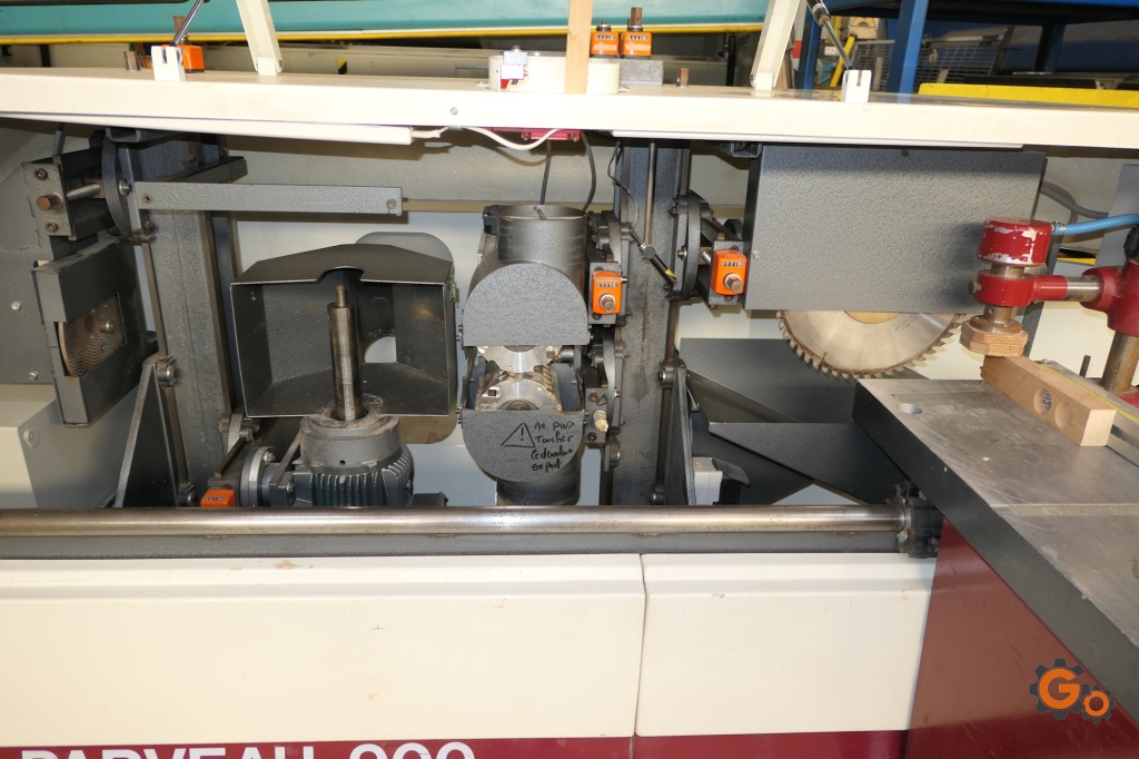 Scie: lame Ø 400 mm, hteur max: 150 mm, moteur: 2,2 kW,Dérouleurs: dimensions max Ø 155 mm, larg 150 mm, moteur 2,2 kW,Toupie: dimension max outil Ø 350 mm, moteur 4 kW, vitesse: 3000 t/minEpauleuse, moteur 1,1 kWRègle, butée