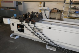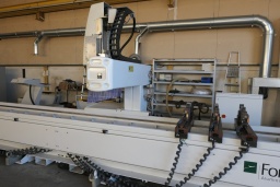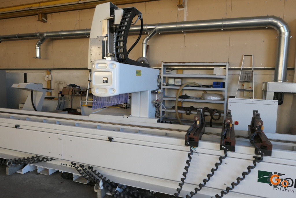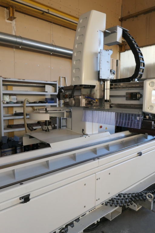 Course en x : 6780 mm, vitesse : 100 m/sCourse en y et z pour usinage face supérieure et postérieure: 545 X 295 mmCourse en y et z pour usinage 3 faces de profil: 440 X 295 mmElectro-broche :Puissance : 6,5 kWVitesse 12000 tr/min maxi,Rotation de l’électro-broche : 0°/90°/180°Magasin avec 12 outils6 étaux à déplacement automatique, géré par la CNButée fixe et inclinaison automatiqueAnnée 2010Video usinage : https://www.youtube.com/embed/PLl88bSHuYo