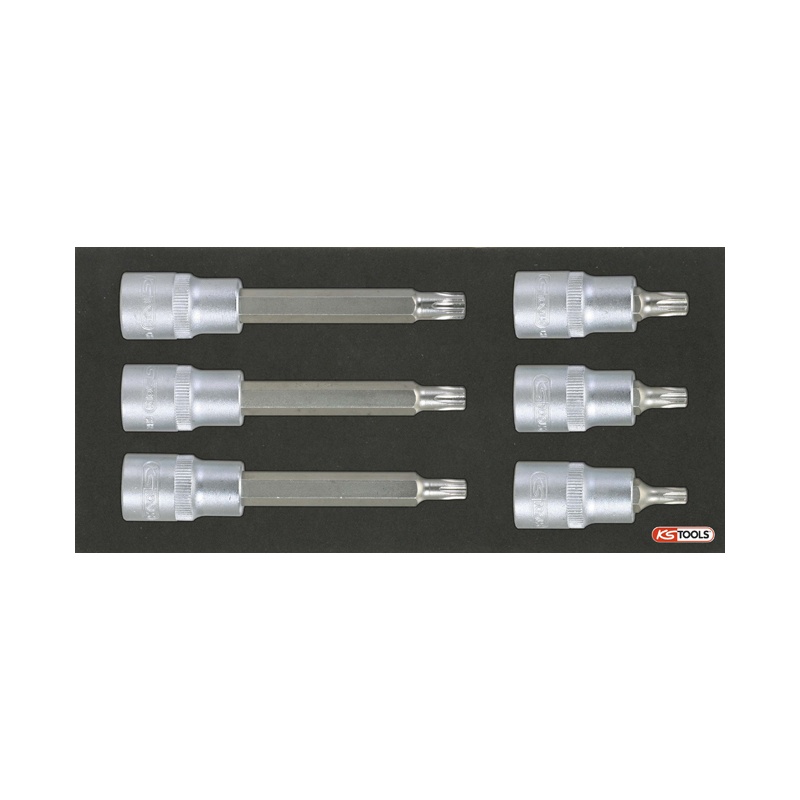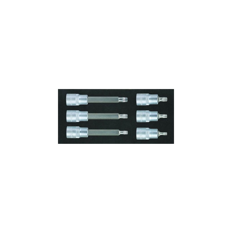 Module douilles tournevis 1/2" torx- embout en acier s2- module de rangement en mousse haute densite- résistant aux hydrocarbure- 99x188mm- composition :3 55mm : t30-t40-t453 110mm : t40-t45-t50