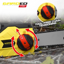 Marque:GARDEO ProGarantie:5 ansDescription:Cettetronçonneuse électriquede la marque Gardeo est équipée dun puissantmoteur 2400W.