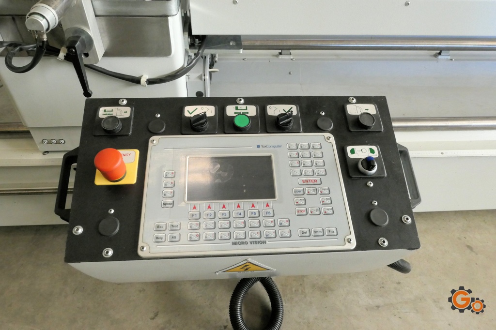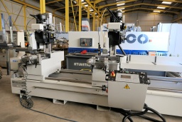 Lames HSS Ø 350 mm – épaisseur 2,5 mm –Moteurs 2 vitesses : 2,2 / 1,4 kW – 1440 / 720 tr/min –Rotation de la lame à 4 vitesses : 15 – 30 – 45 – 90 tr/minTable de travail rotative pneumatiquement de 90° à 45° angles internesTête à coulissement verticalpositionnement automatique de la tête mobile mode manuel possibleVitesse de déplacement de la tête mobile : 20 m/minCapacité de coupe minimale : 480 mmCapacité de coupe maximale : 5000 / 6000 mmPuissance totale : 5 kWÉtaux pneumatiques verticaux et horizontaux avec sécurité anti-ouvertureLubrification de coupe par micro-goutteAnnée 2017