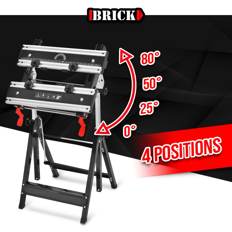 Il convient jusquà une charge maximum de 100 kg.Cet outil dispose dune surface de travail en métal et alliage daluminium qui peut sincliner ou se verrouiller dans 4 positions différentes.Caractéristiques :- Hauteur de: 770 à 1070 mm- Dimensions ouvert: 60 x 58 x 77-107 cm- Charge max : 100 kg- Surface de travail en métal et alliage daluminium qui sincline et se verrouille dans 4 positions- Tubes métalliques 30 x 30 mm- Épaisseur métal 0,8 mm- Livré en boite couleurCode EAN/GLN:5411074159474Poids:8.00 kg