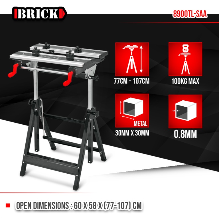 Marque:BRICKGarantie:3 ansDescription:Indispensable dans votre atelier, cetétabli télescopique métalliquede la marque Brick possède une dimension de 60 x 58 x 77-107 cm hauteur réglable de 77 à 107 cm.