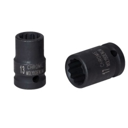 Douilles à chocs 12 pans courtes 3/8"12 pansCarré intérieur selon DIN 3121 / ISO 1174Version courtePour clés à chocsChrome-Molybdène