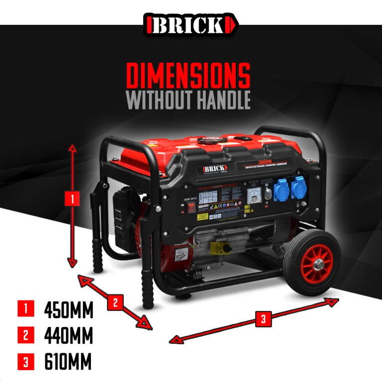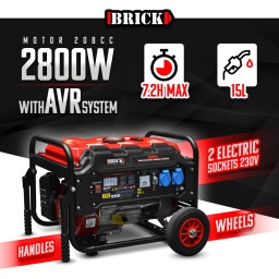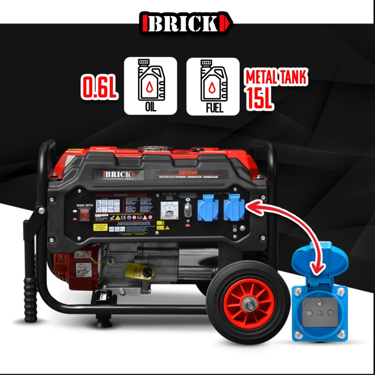 Marque:BRICKGarantie:3 ansDescription:Legroupe électrogène 2800Wde Brick est loutil parfait pour alimenter tous vos appareils en électricité.