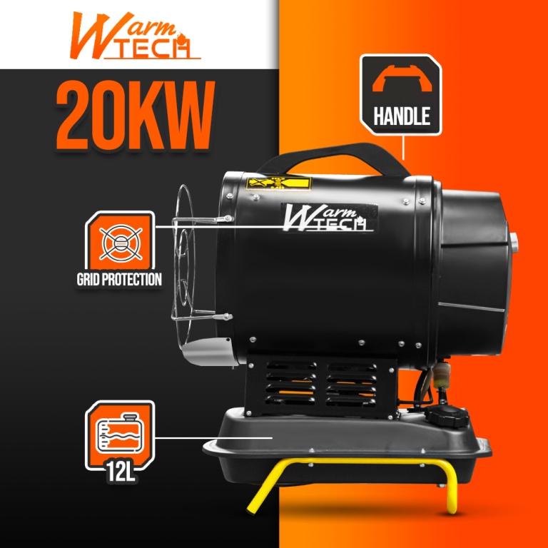 Il diffuse un bon flux dair chaud grâce à une puissance de chauffe de 20 KW .
