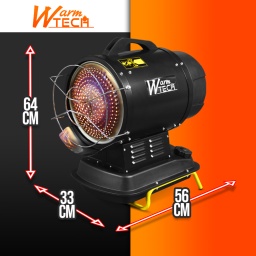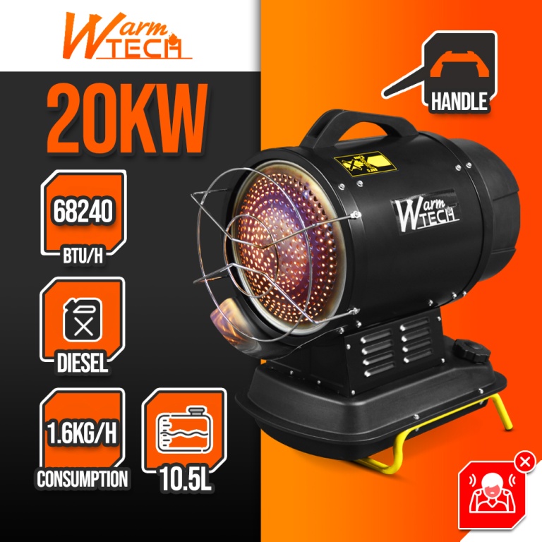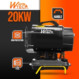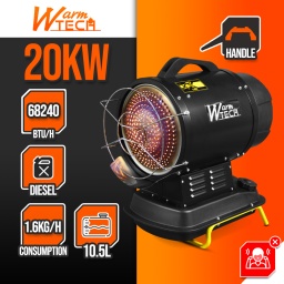 Il est facile à déplacer et à transporter grâce à sa poignée supérieure.Caractéristiques :- Fonctionne au diesel ou au pétrole- Puissance de chauffe 20 KW / 68240 BTU/H- Puissance moteur 38 W- Consommation: 1.6 kg/H- Capacité du réservoir: 10.5 L- Dimensions: 560 x 330 x 640 mm- Avec thermostat manuel et un écran indiquant la température ambiante.- Aussi bien pour lintérieur que pour lextérieur, pour chauffer, sécher et mettre hors gel des espaces ventilés- Idéal pour utiliser sur un chantier- Ne nécessitant pas de ventilation, il ny a aucun déplacement dair et le niveau sonore des appareils est très réduit.Code EAN/GLN:5411074194970Poids:20.00 kg