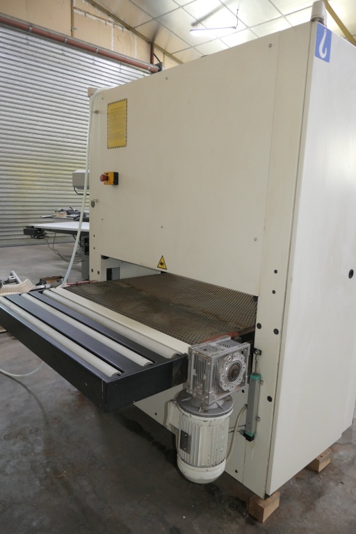 Largeur: 1100 mm,2 bandes: 1 bande sur cylindre, 1 sur cylindre patinmoteur: 15 kWLargeur minimale des pièces:52 mm,Longueur minimale des pièces: 370 mm,Hauteur des pièces entre 3 et 170 mm,Moteur d’avance 3 kW, Vitesse d’avance: 4,5 / 20 m/min,