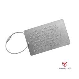 Livrée avec câble en acier de 15 cm doté dun fermoir à vis.Tag didentification en aluminium au format CB personnalisable par embossage lettres en relief.En aluminium, ne rouille pas, ne se déchire pas.