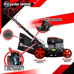 Cette technique permet de fertiliser votre gazon et permet dobtenir une herbe plus verte et en meilleure santé.Elle est aussi équipée dune éjection latérale permettant de traiter des herbes plus hautes et de mieux répartir les déchets de tonte.Pour vous assurer une bonne prise en main, elle dispose dune poignée ergonomique « softgrip ».Caractéristiques:- Puissance : 144 CC / 2.5 Kw- Largeur de travail : 400 mm- Capacité du réservoir dessence: 0.8 L 95 ou 98 oct.- Capacité du réservoir dhuile: 0,4 L SAE 15W-40- Auto-tractée- Système hauteur de coupe : central 7 positions 25-75 mm- Type de carter : acier- Roues avant : 150mm- Roues arrière : 200mm- Capacité du bac récolteur : 40 L- Convient pour un terrain de max 800 M²- Poignée Softgrip- Garantie 3 ansCode EAN/GLN:5411074244576Poids:25.00 kg