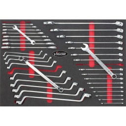 Module clés mixte, fourche et contre courdée , 36 pièces- 6-7-8-9-10-11-12-13-14-15-16-17-18-19-22-24-27mm- Contre coudée : 6X7-8X9-10 x 11 · 12 x 13 · 14 x 15 · 16 x 17 · 18 x 19 · 20 x 22-24X27mm- Fourches : 6 x 7 · 8 x 9 · 10 x 11 · 12 x 13 · 14 x 15 · 16 x 17 · 18 x 19 · 20 x 22-21X23mm- Dimension 563x393mm