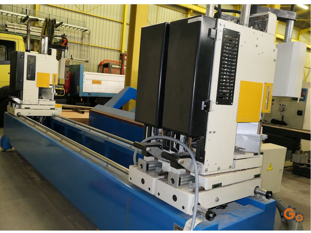 • Grands vérins pneumatiques pour le serrage des profils, équipés de régulateurs de pressionTableau électrique contrôlant chaque carte électronique installée sur chaque tête.