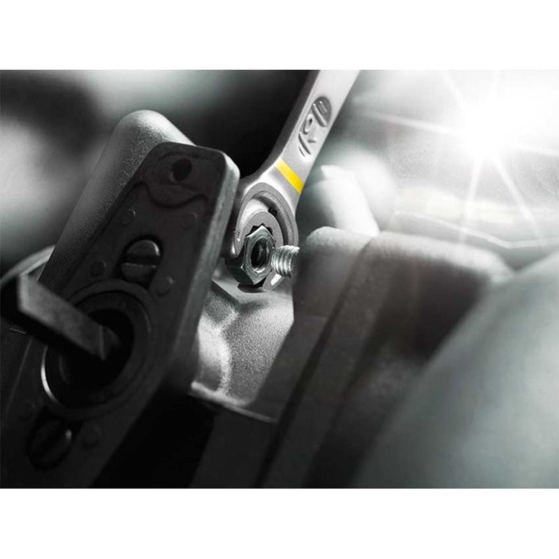 Cela facilite bien des choses.Sans oublier que vous pouvez ainsi déployer beaucoup plus de puissance lors du serrage.L’ingénieuse géométrie dodécagonale de Joker engendre une liaison géométrique intime avec la vis ou l’écrou – une liaison qui tient ! Et la plaque interchangeable en métal trempé située dans la fourche de Joker « enserre » littéralement la vis de ses pointes extrêmement dures.Deux atouts permettant d’éviter tout dérapage malencontreux, même lors de serrages avec couplesélevés.Là où le manque d’espace obligeait jusqu’à présent à retourner X fois les clés conventionnelles à angle de reprise de 60° pour serrer ou désserrer vis ou écrous.Au lieu des 60°, Joker offre un angle de reprise de 30° couplé à un mécanisme dodécagonal.