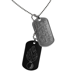 Pour Gendarmes dactive ou tous ceux qui désirent le devenir !Cet ID Tag est composé de 2 plaques militaires en acier à bords retournés et montées sur bélières.