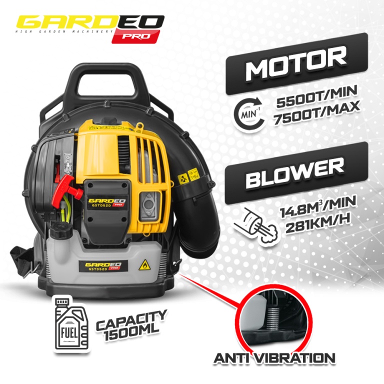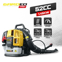 Marque:GARDEO ProGarantie:5 ansDescription:Ce souffleur dorsal thermique est la solution parfaite pour enlever les feuilles de votre jardin, votre allée, votre terrasse...Équipé dun moteur 52 cc, ce souffleur thermique dorsal vous permet de régler la vitesse de la soufflerie jusquà une vitesse maximum de 281 km/h.