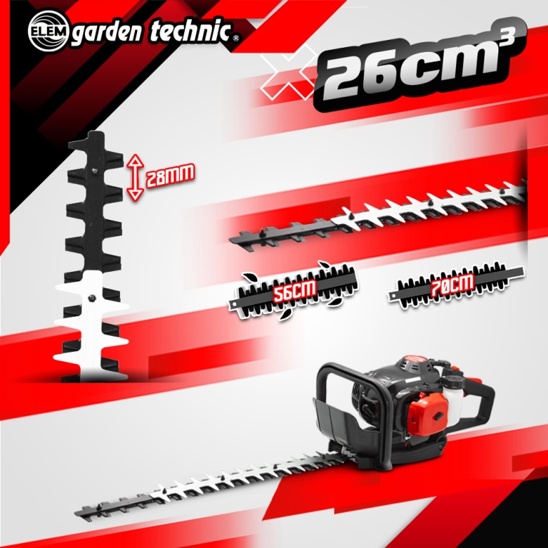 Marque:ELEM Garden TechnicGarantie:3 ansDescription:Ce taille-haies thermique 26 cc est équipé dun moteur 2 temps refroidi par air, ce qui vous permet de travailler efficacement sans vous soucier de la surchauffe.