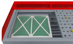 onstruction en métal et excellente performance d´aspiration, avec un débit de 8000 m³/hPermet un ponçage dans les ateliers et les usines, sans poussière, et sans besoin d´aucun système d´aspiration supplémentaireConvient à toutes sortes de pièces en boisLes panneaux latéraux rabattables permettent également le ponçage de pièces plus longues.Pas de rayures sur la pièce grâce aux supports en caoutchouc.Puissance daspiration élevée grâce à la grande surface du filtre et le ventilateur intégréDépoussiéreur rétractable à lavant de la machine pour éliminer facilement la poussière de ponçageLair déchappement filtré est recyclé sur le lieu de travail en mode de recirculation et garantit un air pur pendant le travail.Garantie 2ansInclus dans la livraison:Socle avec pieds, filtres, panneaux latéraux amoviblesDonnées sur les moteursPuissance moteur S1 W2 x 1000 WVoltage230 V / 50 HzdimensionsDimensions machine mm2200 x 600 x 850AspirateursCapacité aspiration m³/h8000Turbine métallique mmØ 250Filtre frontale4 x 395x495x24Niveau puissance sonore- vibreurNiveau de pression acoustique en dB< 73,5PoidsPoids brut kg133Poids net kg125emballageLargeur emballage mm690Longueur emballage mm2.250Hauteur emballage mm730Information généraleCode EAN91201 32 14 07 17