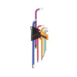 Jeu de 9 clés mâles 6 pans coudées à tête sphérique. colo...