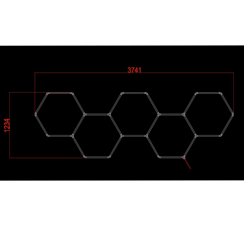 Ensemble eclairage atelier hexagonale 5 hexagones en ligne 203WConsommation d'énergie 203 kWh/1000hTension d'entrée AC165-265VFlux 24360lmFlux par Watt 120lm/WIP 20Température de couleur corrélée 6000KCouleur lumière Lumière blancheÉtiquette d'efficacité énergétique EAngle de faisceau 180°Cycles marche / arrêt 25 000xAllumage instantané 0.1sFréquence de fonctionnement 50-60 HzTempérature -20°C / 40°CRa ≥ 80Maintien du flux lumineux en fin de vie 70%Taille du produit 1234x3741mm