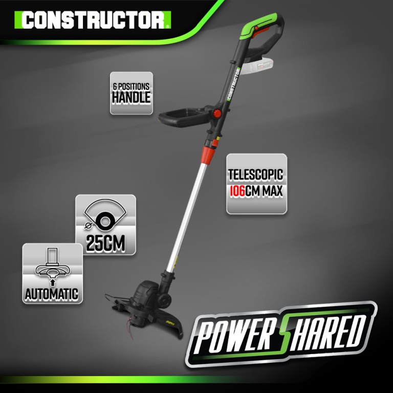 Son carter en polypropylène est très léger et ne demande que très peu d’entretien.Ce coupe-bordures rechargeable Constructor est idéal pour entretenir les bordures des petites et moyennes pelouses.