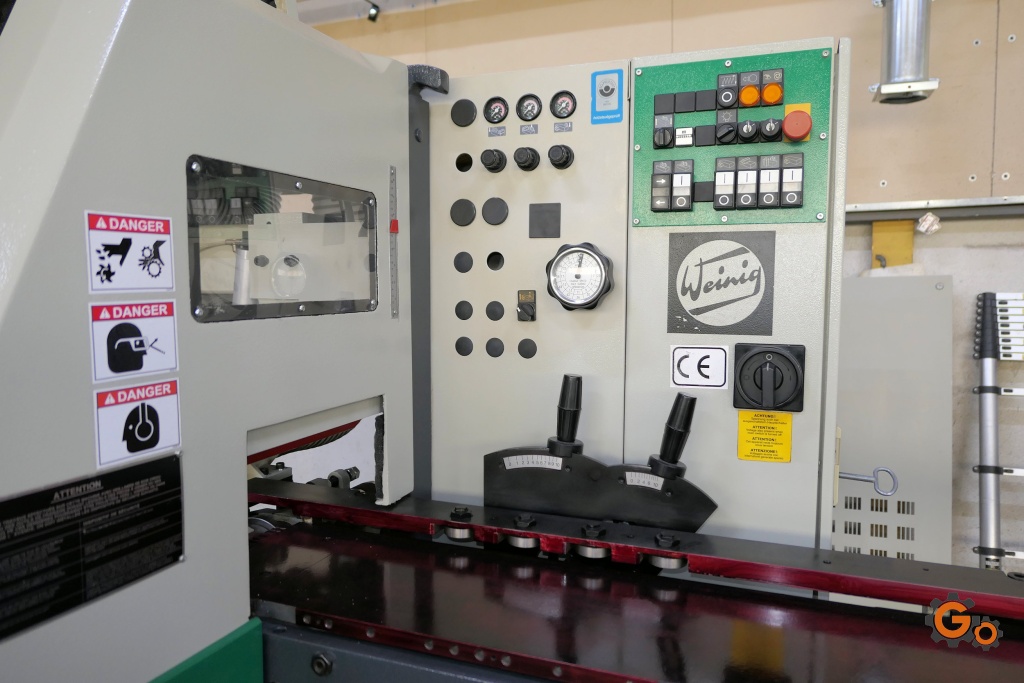 Largeur: 230 mm,Hauteur: 120 mm,5 arbres: dégau4 kW, toupie droite et toupie gauche11 kW, Rabo 11 kW, inférieur 7,5 kW,Moteur d’entrainement: 3 kW,Vitesse d’avance variable de 5 à 24 m/min,Table longueur 2 m,
