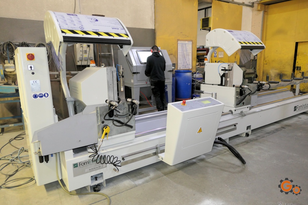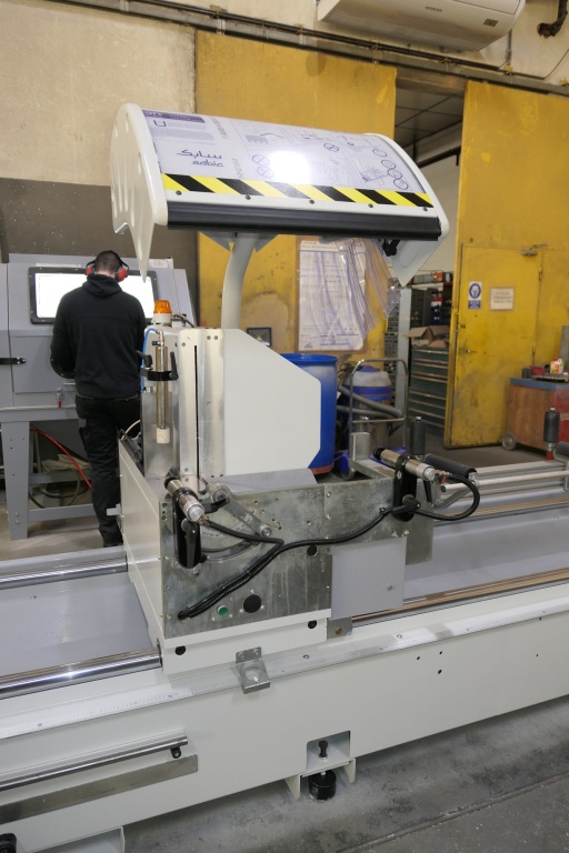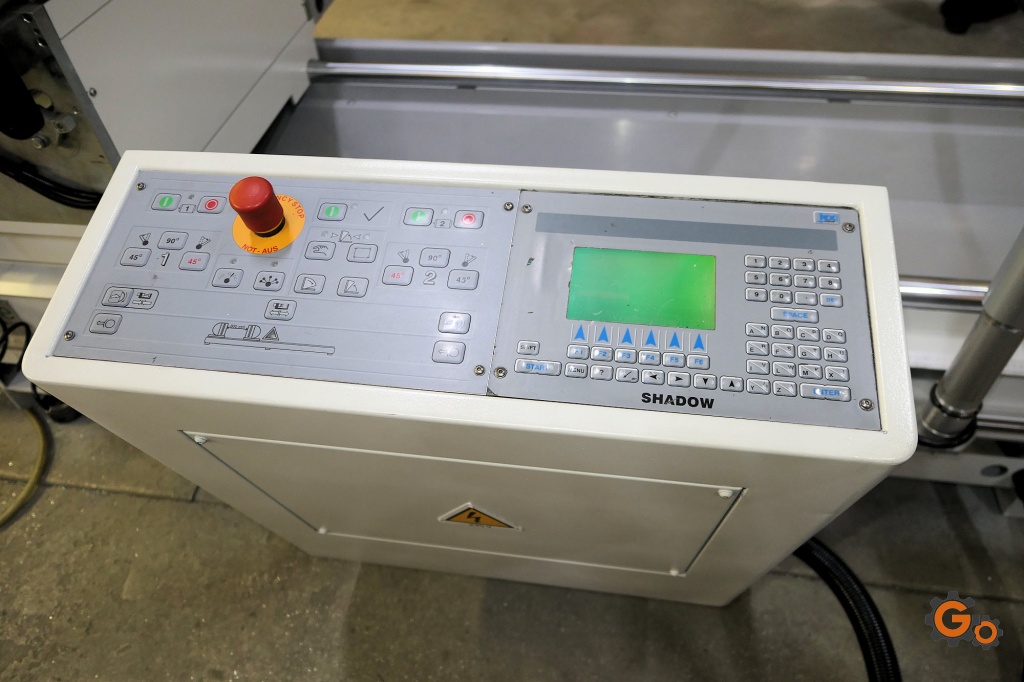 Ø lames: 500 mmOuverture: 5 mCoupe mini entre lames: 300 mmMoteurs lames: 2.2 kW / 3 CHInclinaison pneumatique: de 90 à 22.5°Etaux pneumatiques: 3 horizontaux et 2 verticauxPalpeur de hauteur de profilsAnnée 2005