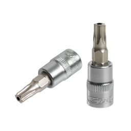 Douille tournevis ultimate torx perce- carré d'entrainement intérieur selon din 3120 / iso 1174avec encoche pour verrouillage par bille- embout en acier nickele- finition satinee- chrome vanadium
