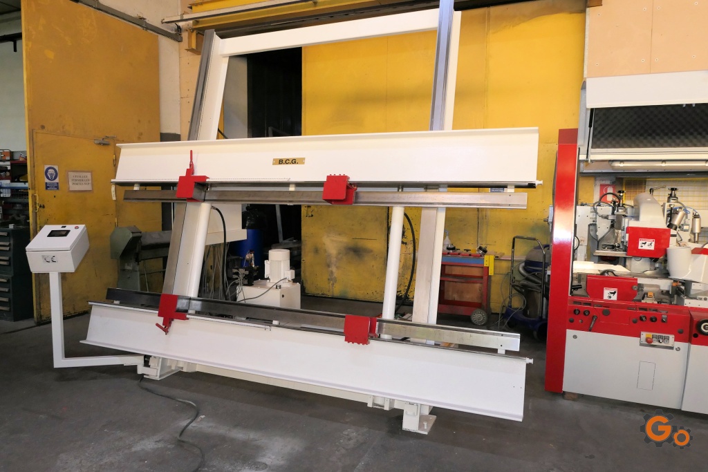 Capacités: 3000 X 1700 mmMode manuel et semi-automatique: on choisit la pression de serrage horizontal et vertical , on démarrage le cycle, on serre pendant un temps choisi à l’issue de ce temps soit on desserre automatiquement afin de passer à une autre menuiserie soit c’est l’opérateur qui décide de desserrercoffret électrique refait avec automate
