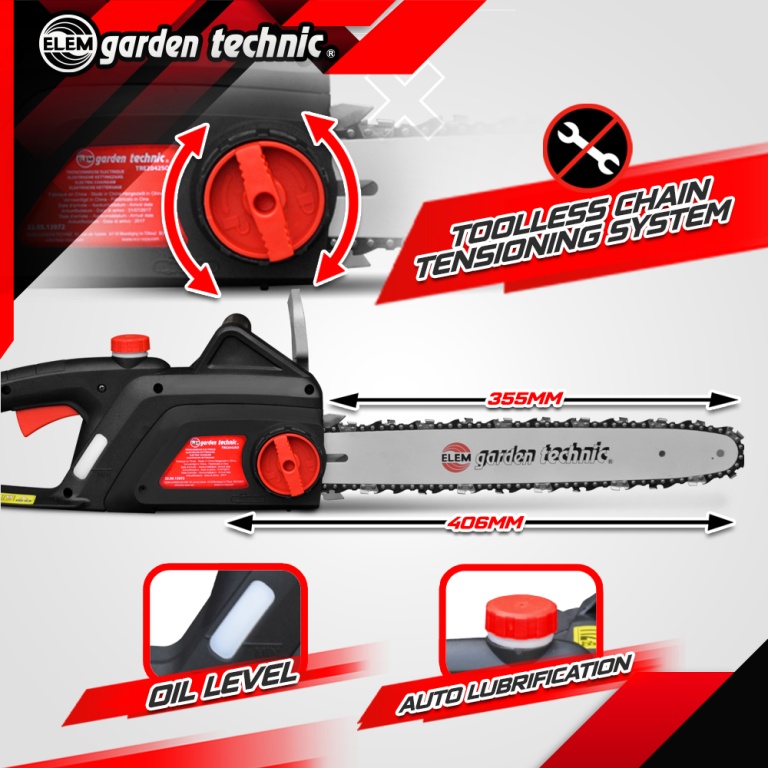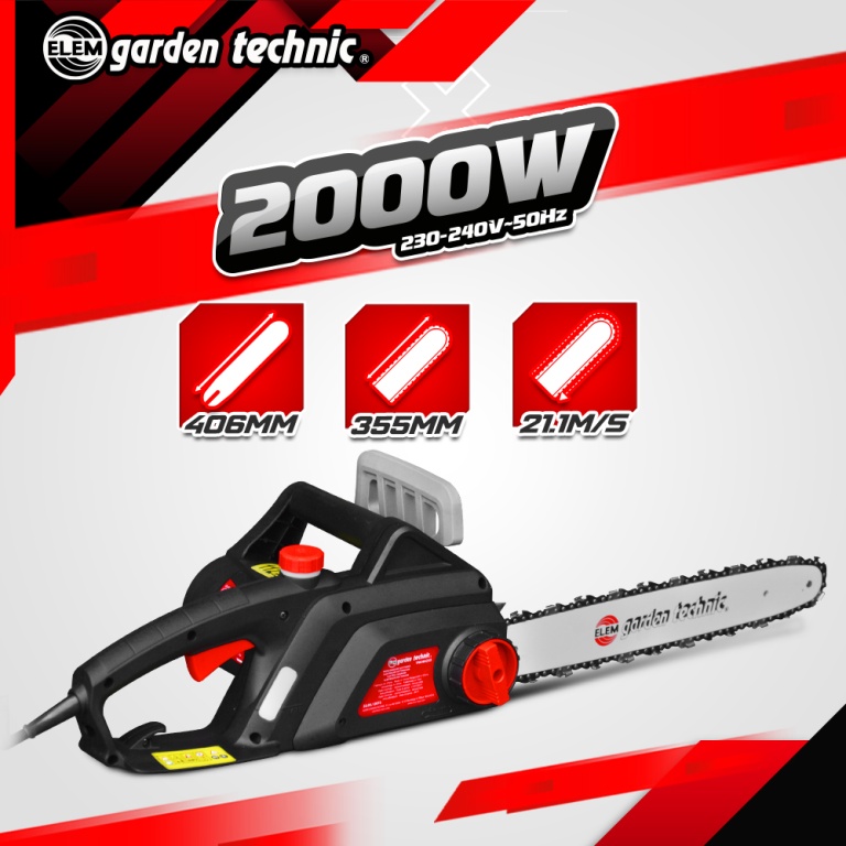 Marque:ELEM Garden TechnicGarantie:3 ansDescription:Cettetronçonneuse électriquede la marque Elem Garden Technic est équipée dun moteur de 2000 W.