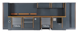 Combinaison complète composée de :- Armoire à 1 porte C55A1- Armoire à 2 portes C55A2- Établi C55BO/2- Établi avec prises C55PRO BO/2- Servante mobile à 7 tiroirs C55C7- Module fixe à 2 grands tiroirs C55M2- Module fixe à 7 tiroirs C55M7- Module fixe de service C55MS- Paroi avec meubles hauts C55/2PM- Parois porte-outils avec volet roulant C55PS-O5,4x2,00x0,76 m