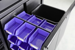 MOBILIO armoire d'atelier large, 7 tiroirs et 2 coulissantsAvec verrouillage central, 7 tiroirs sur roulement à billes à ouverture totaleTiroirs :1 × L 1273 H 114 P 406 mm5 × L 593 H 74 P 406 mm1 × L 593 H 153 P 406 mm2 × L 320 H 548 P 406 mmCaisson livré prémonté