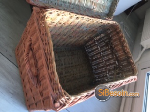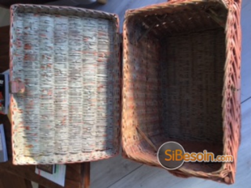 A vendremalle ancienne en osier peinte en couleur saumonbon étatDimensions :L : 64 cml : 44 cmH : 48 cmPrix fermeà retirer sur place