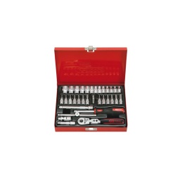 Coffret 33 pièces douilles 1/4 f6 mat spécial écrous endomm ge- cliquet equipe du système d'ejection de douille 45 dents tête inclinable 180°- poignée bicomposant ergonomique- embouts en acier s2 ultra resistant- coffret métalcomposition :- 1 cliquet 1/4- 2 rallonges 50-100mm - 1 poignée coulissante t 115mm - 1 poignée enmanchee 1/4- 1 cardan- 1 adaptateur 1/4- 13 douilles courtes 4-4.5-5-5.5-6-7-8-9-10-11-12-13-14mm - 13 douilles embouts de vissages6 6pans 3-4-5-6-7-87 torx perces t10-t15-t20-t25-t27-t30-t40