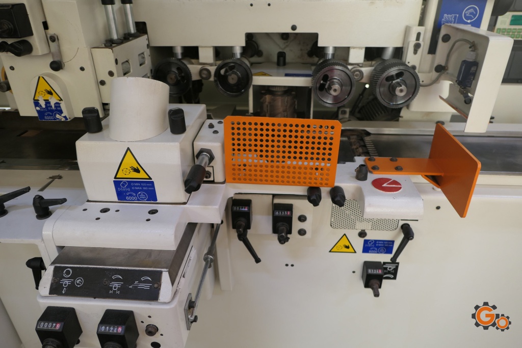 Capacités: 230 X 120 mm,5 arbres: dégau, toupie droite, toupie gauche, rabo, universel orientable à 360 ° pour usiner dans n’importe quelle position,Largeur et hauteur programmableVitesse d’avance variable de 4 à 24 m/min
