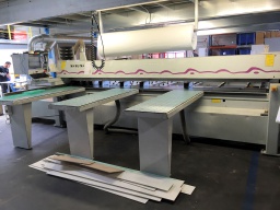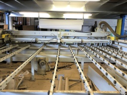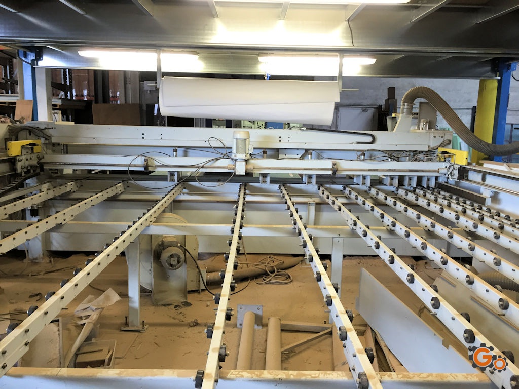 Capacités: 4 200 X 4200 mmGuide numérisé avec 7 pinces pour tenue et avance du panneauCommande numérique avec PC remplacée en 20163 x tables à coussins d’air en entréeMoteur de la lame : 7.5 CHMoteur d’inciseur : 1.5 CHDiamètre lame 350 mm, saillie de la scie : 78 mm, hauteur de coupe : 75 mmVitesse d’avance : 6-32 m/min, retour 32 m/minVARIATEUR DE VITESSE SUR LA LAME très rare