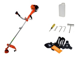 Vous pourrez changer en un tour de main de lame de coupe ou de fil coupant.Garantie 2ansBloc Moteur 52cc équipé dun système de démarrage facileSystème Anti-Vibrations pour un Confort augmentéTube des poignées dépaisseur 1.5mm, bien plus solideConnecteur alu à cliquet pour un emboîtage aiséCarter plastique de protection plus large et plus résistantMoteur plus silencieuxRéservoir avec carter de protectionContenu:Une débroussailleuseOutils de coupe : lame et coupe-borduresUn récipient pour effectuer le mélange carburantUn harnais de sécurité pour coupe bordureKit doutilsCaractéristiques Techniques:Moteur : 1E44F-5, 52 cm³ 3cvPoids: 11.5KgRefroidissement à airPuissance: 2,2 KW / 3cv - 9000 T/minRéservoir: 1200 mlDimension du carton: 108 x 30 x 30 cmLongueur: 1860 mmLargeur: de 360 à 600 mmLargeur du moteur: 280mmHauteur du moteur : 260mmCarburateur à diaphragmeProtection de lame très robusteLame de fauchage à 3 dentsDispositif de démarrage facileUn bouton darrêt durgence