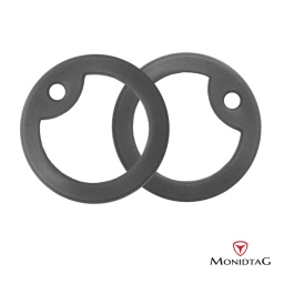 Lot de 2 silencieux élastiques GRIS ou protections en silicone pour plaques militaires Dog Tag de format standard 50 x 28 mm.