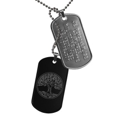 Arbre de vie gravé sur plaque acier noire.Cet ID Tag est composé de 2 plaques militaires en acier à bords retournés et montées sur bélières.
